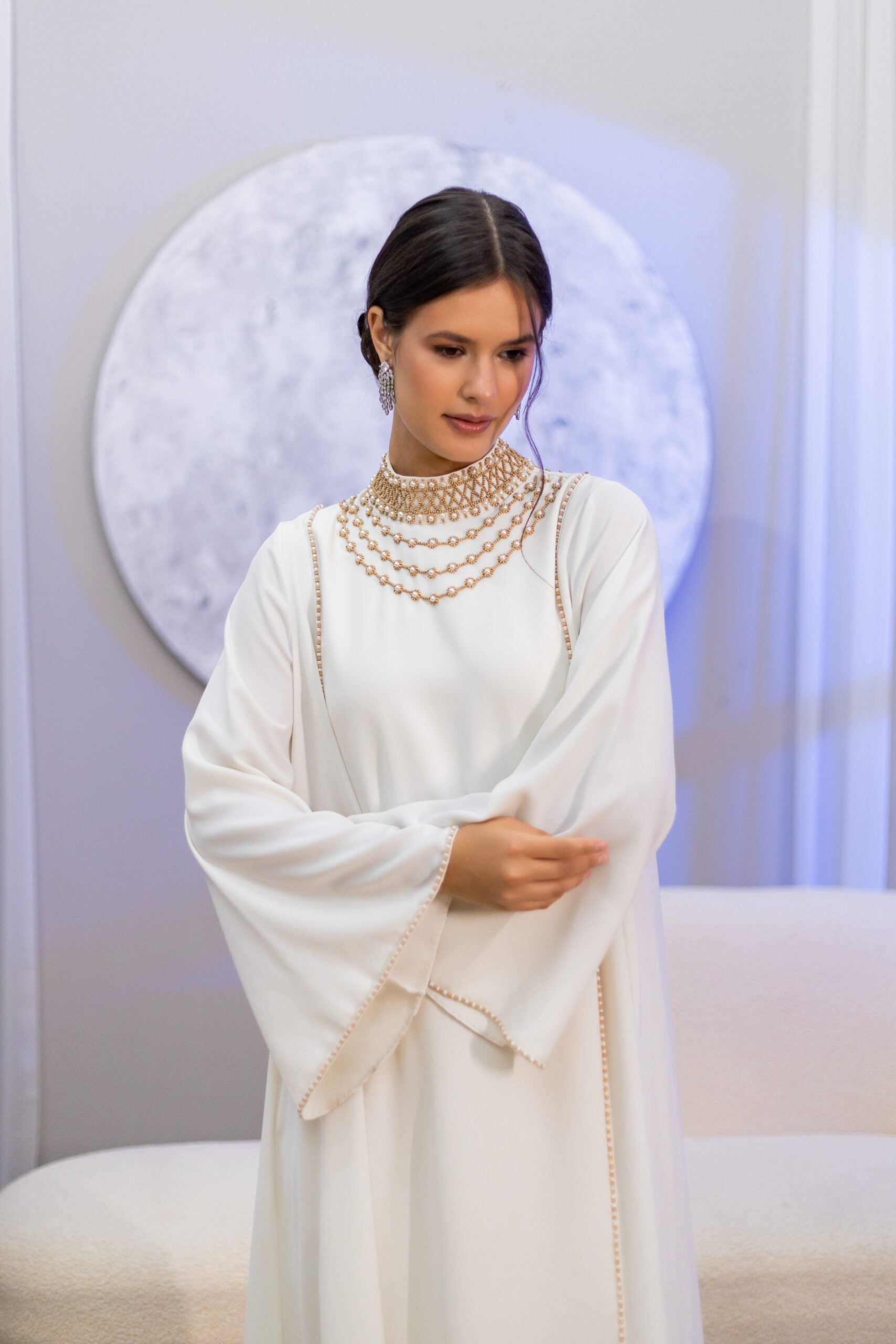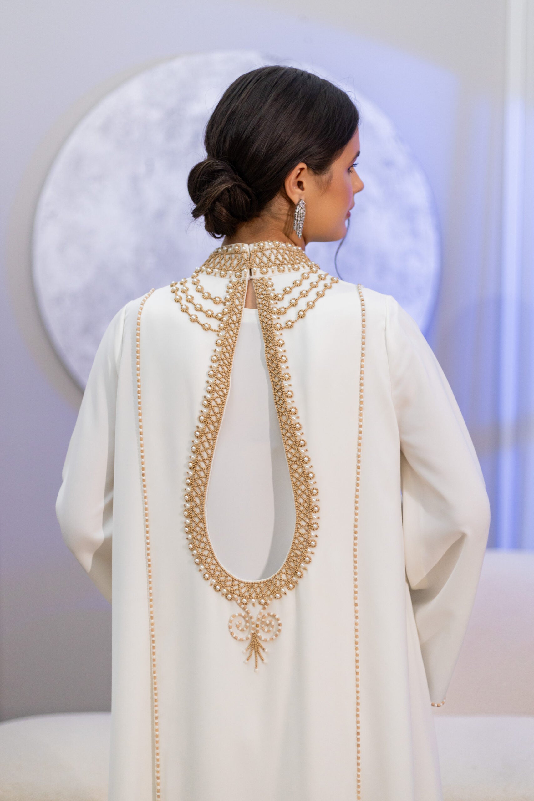 Versatile Kaftan with Pearl and Wooden Detailing, Convertible Front and Back Design