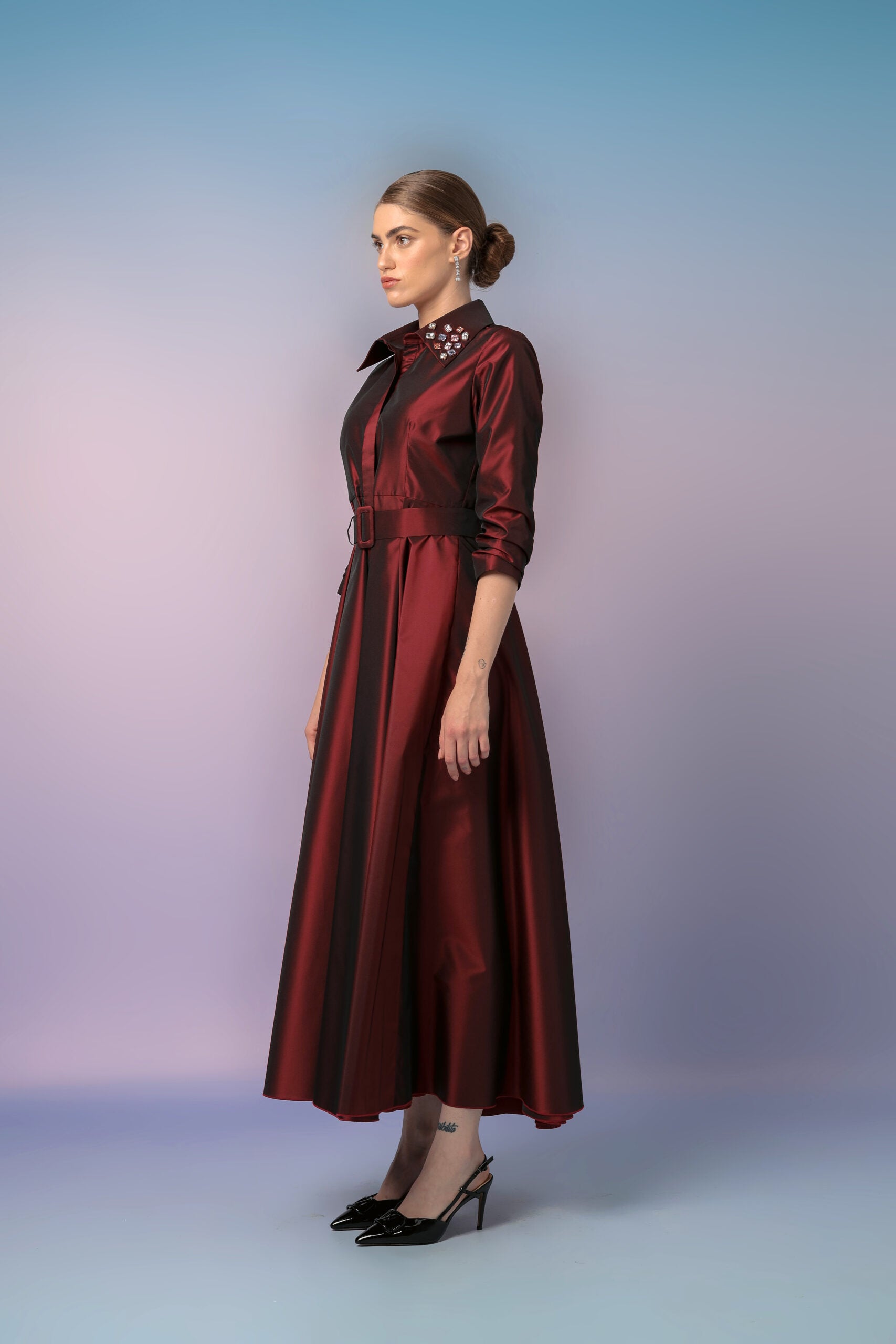 This Dress has embraced a modern Arabian silhouette, making it a splendid choice for special occasions. The maxi-length dress is designed with meticulous attention to detail, This ensemble exudes elegance and sophistication, ensuring you stand out at any event you attend.